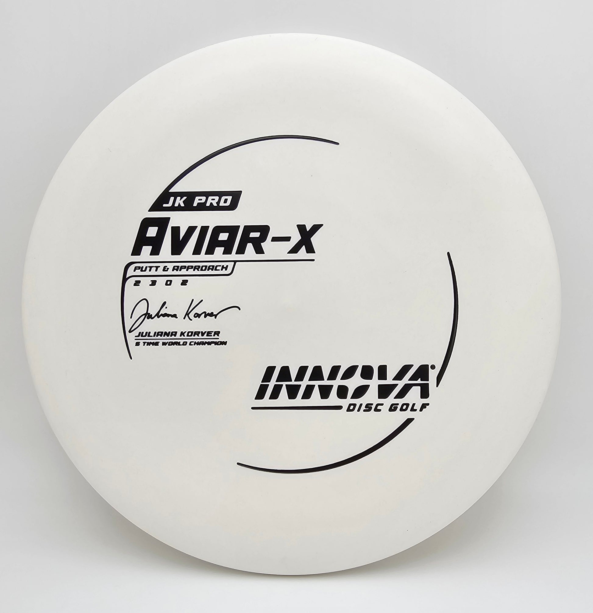 The JK (Juliana Korver) Aviar is made from the driver mold in a special blend of durable Pro-line Plastic that is more flexible and grippier than the other Aviar models. It has the same flight characteristics as the KC Aviar. Its softer plastic is better in colder climates and for those who have dry hands and require a tackier grip.