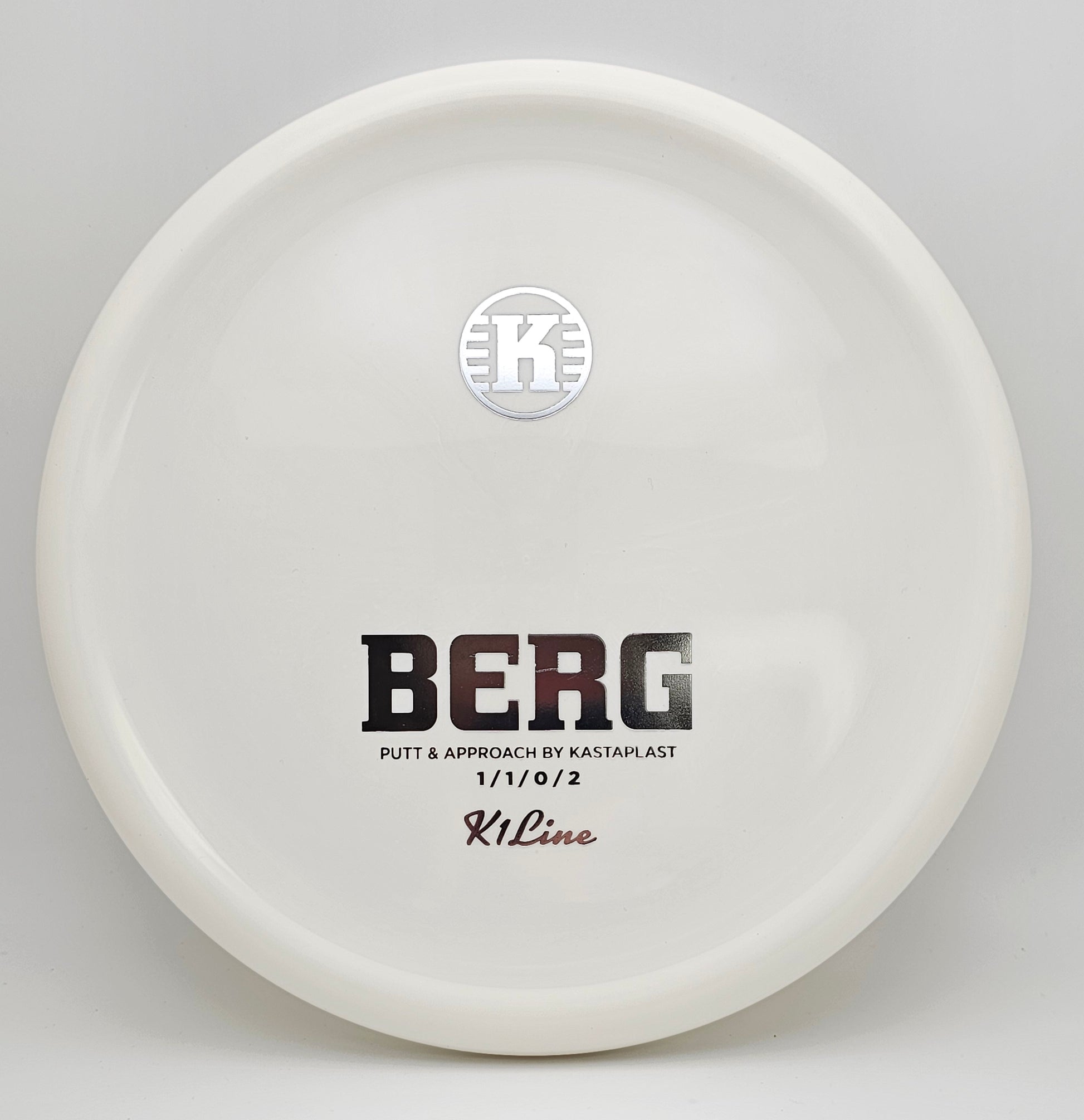 The Kastaplast K1 Berg is a slow stable putt and approach disc for fearless putts, short drives and approach shots. It features an ergonomic grip. The thumb track on the Berg was designed to be prominent on the top side while not being noticeable at the bottom. This is a very different feel than any other disc golf putter.