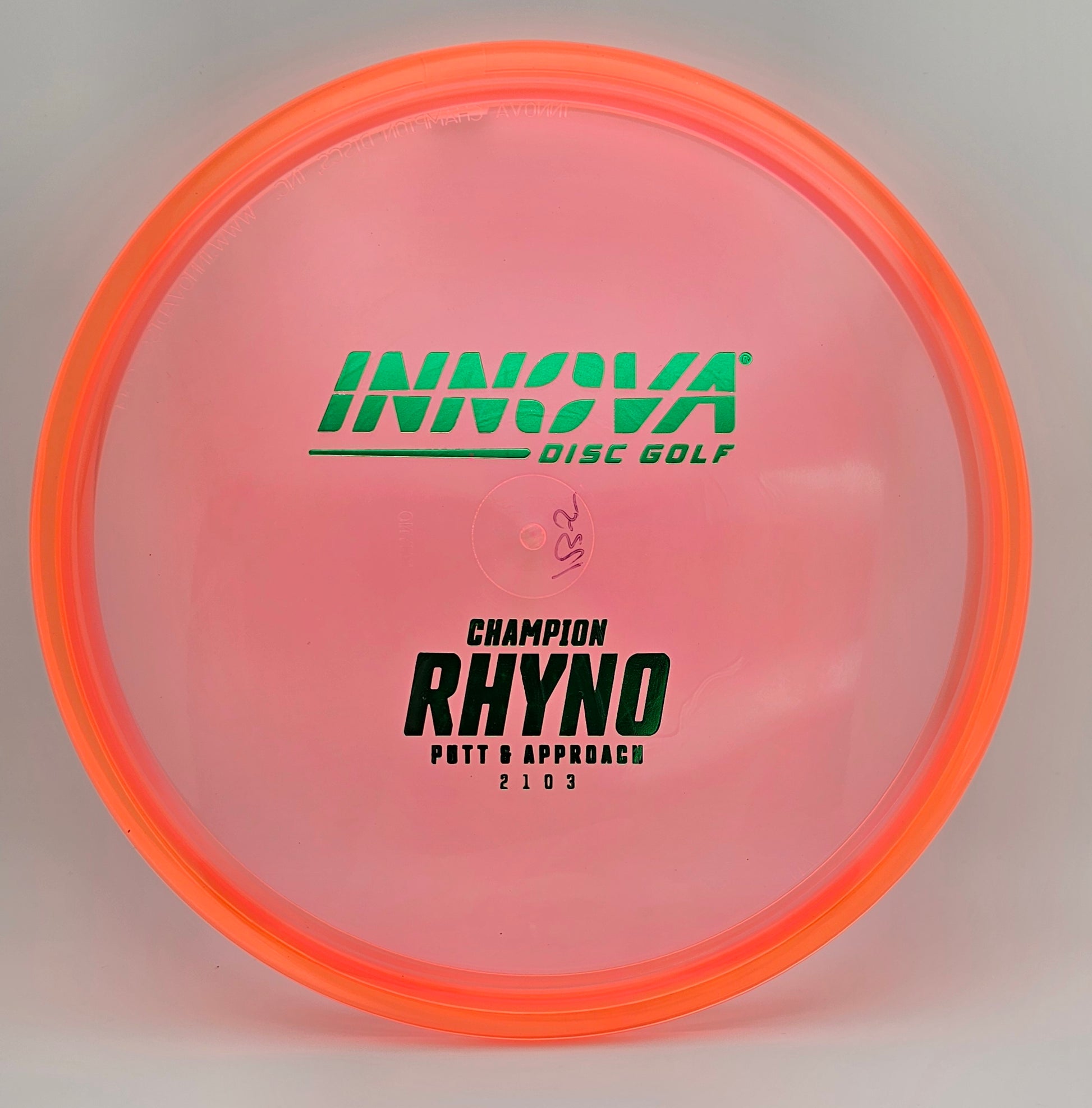 The Rhyno is an overstable putt and approach disc that can handle headwinds. Great for players with lots of throwing power as the Rhyno stops on a dime and stays close to the basket. It is a must have disc for short to medium up shots and putting into the wind.