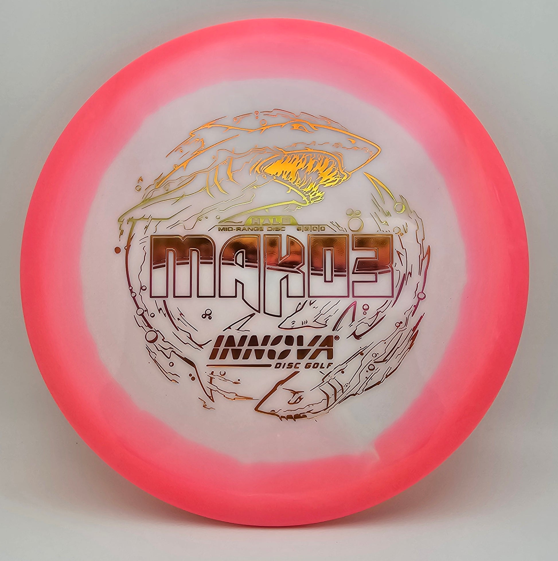 The Mako3 is the faster, low profile version of the remarkably straight flying Innova Mako. This stable to understable large diameter mid range has a slow and steady speed and hugs the line you lay it on, especially when it’s a straight one. Its ease of use puts control in the hands of every golfer and long-lasting Halo plastic means it will stay in your bag for a very long time.