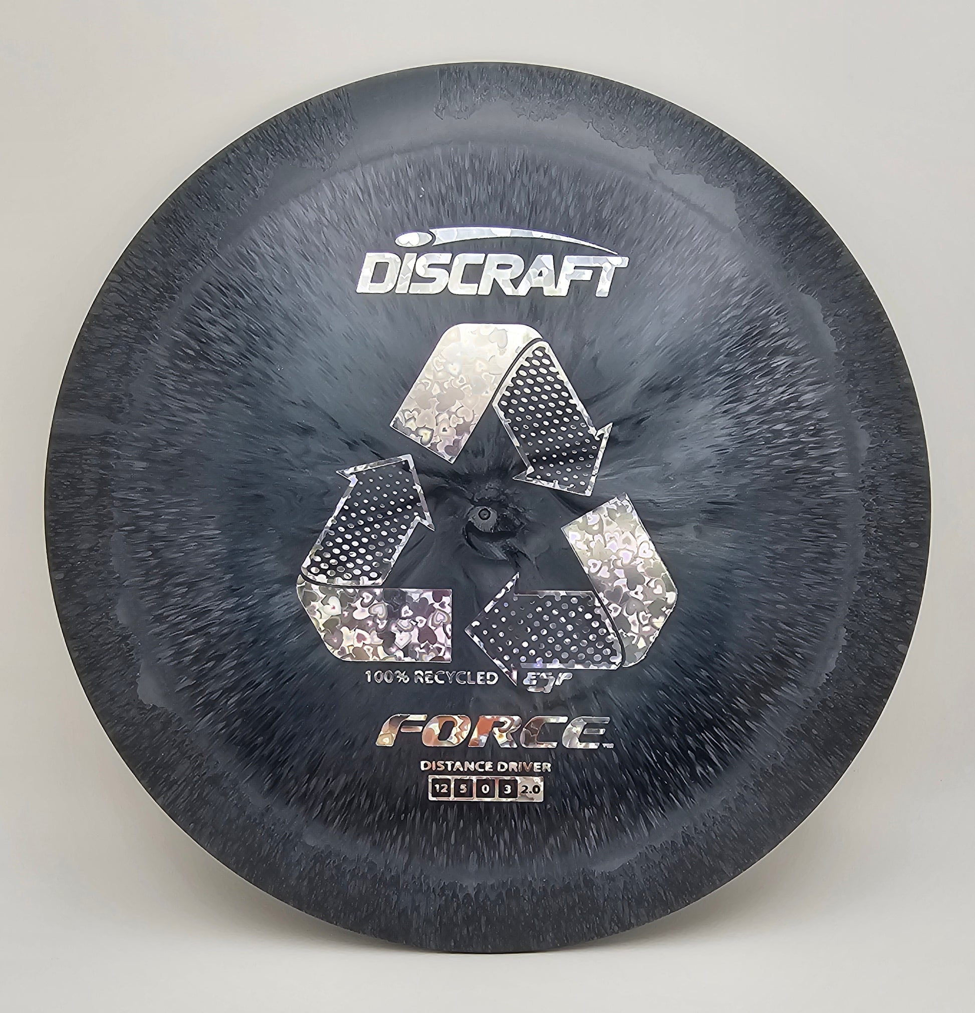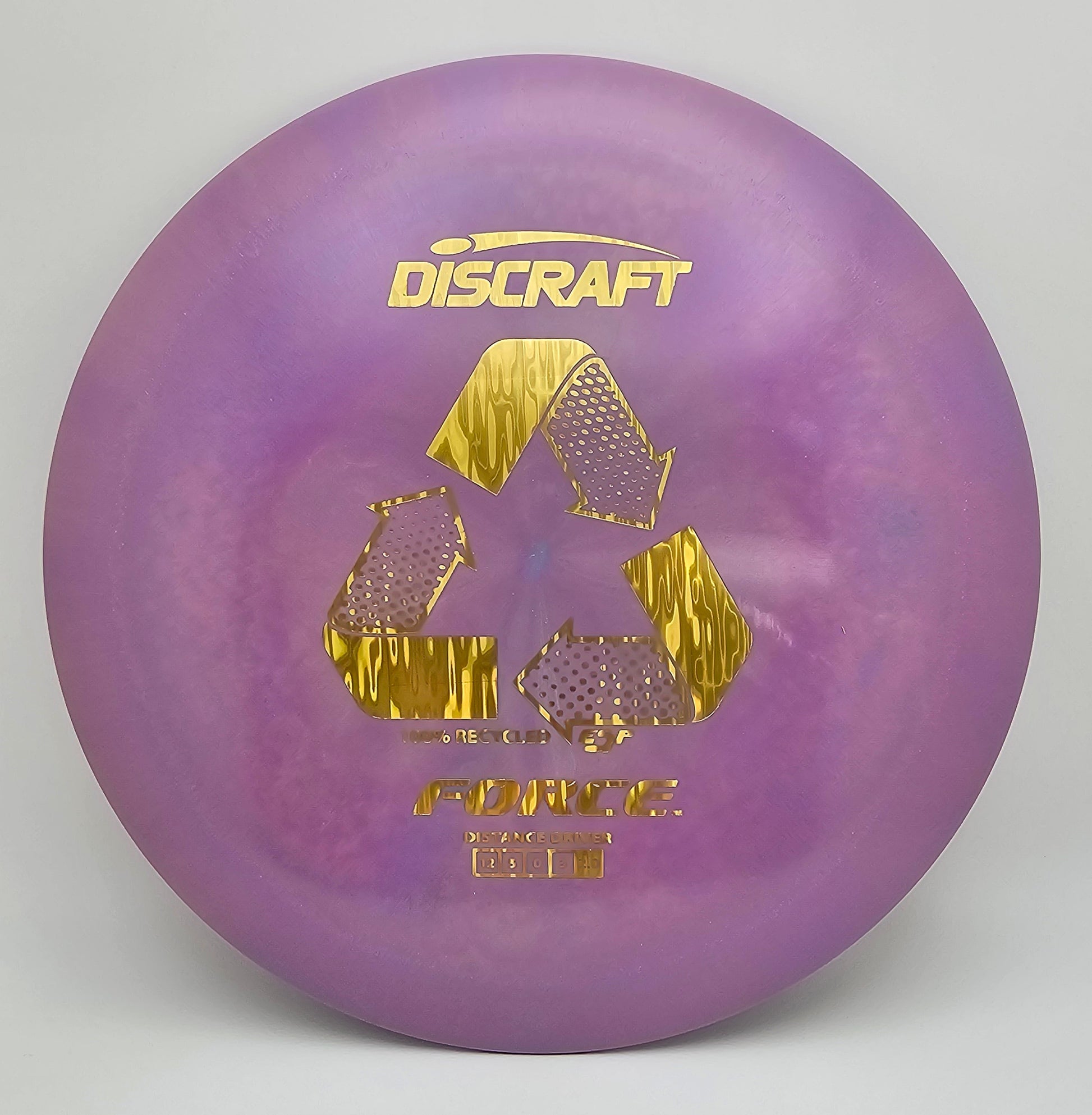 Go green with the Recycled ESP Force, a high-performance driver crafted from eco-friendly materials. This disc combines the trusted stability of the Force with a focus on sustainability, providing the same reliable flight characteristics with a more environmentally conscious approach. The Recycled ESP plastic offers a comfortable grip and durable feel, perfect for achieving long, controlled drives. With its overstable nature and high-speed design, the Recycled ESP Force excels in windy conditions and aggressive throws. It's an ideal choice for players who want to reduce their environmental impact without compromising on performance.